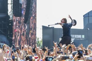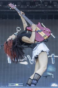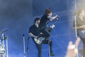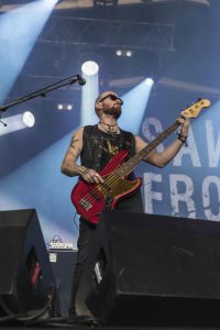 FRANK CARTER & THE RALLESNAKES, un retour 2 ans après une prestation exceptionnelle. Seulement, après avoir mise la barre très haute, on veut du haut. Même si Frank a changé physiquement et arbore une tenue étonnante (un costume), l’artiste n’a pas changé aimant s’installer au milieu du public très nombreux pour être le centre d’un circle pit mémorable, dont certains photographes ont laissé des plumes. Alors même si pour moi, c’était un peu moins fringant qu’il y a 2 ans, cet artiste est toujours très bon et explose les festivaliers comme toujours.